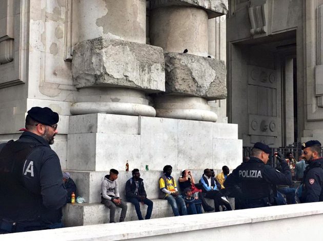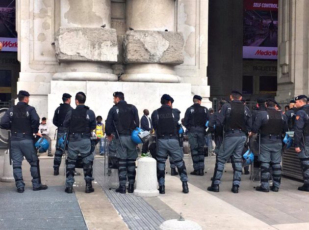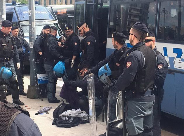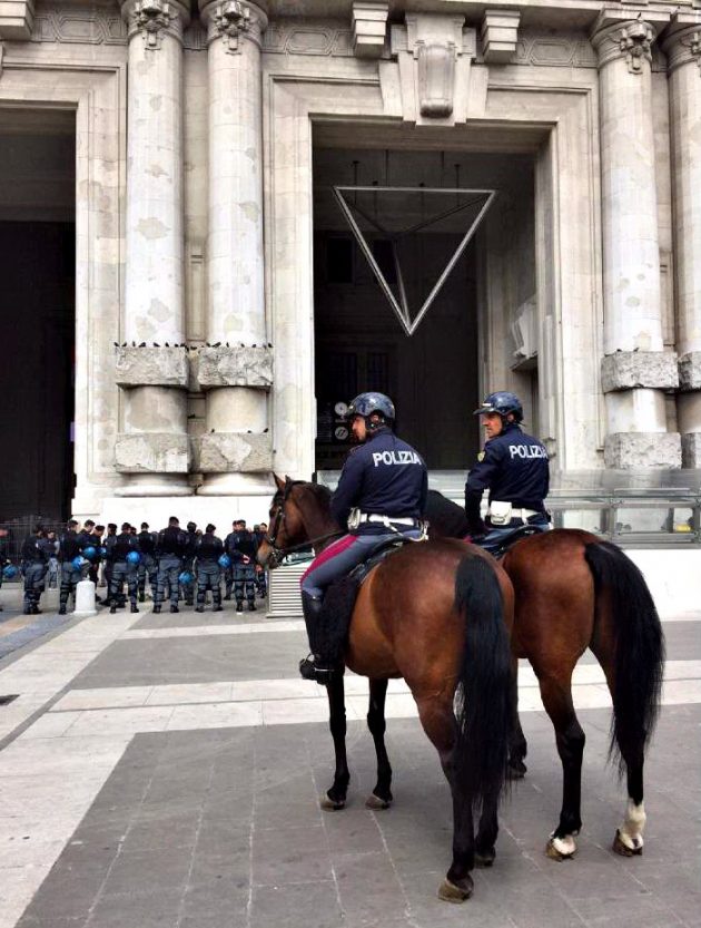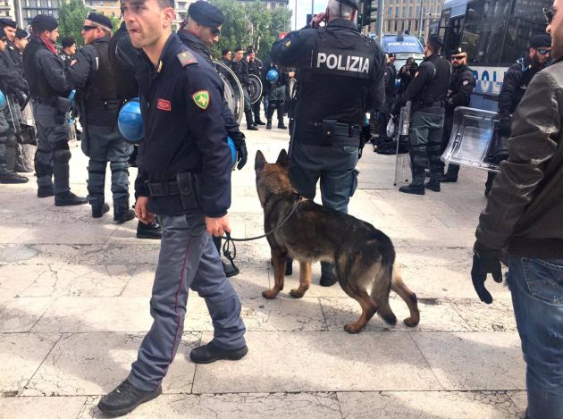 Gli ingressi della stazione sono stati quasi tutti chiusi, a parte quelli laterali presidiati dagli agenti per procedere ai controlli e impedire il pericolo di fuga delle persone da identificare ed eventualmente accompagnare in questura. Su piazzale Duca d’Aosta – monitorato dall’alto da un elicottero, dal quale la scientifica ha effettuato riprese aeree – sono state impiegate poliziotti a cavallo e unità cinofile nel controllo dei giardinetti dove stazionano quotidianamente immigrati e senza casa.