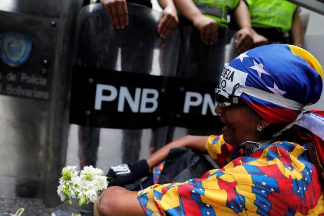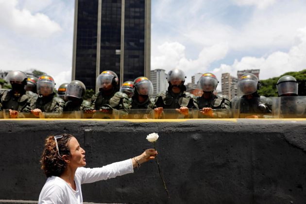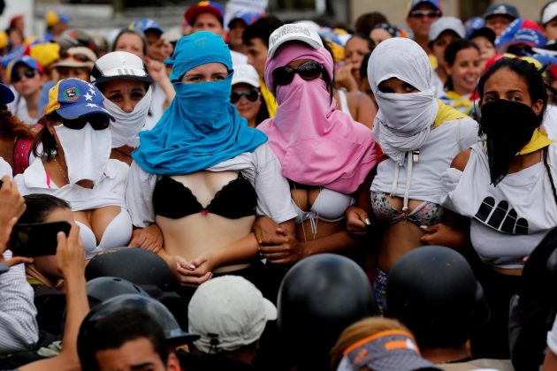 Le ‘mujeres’ della capitale si erano date appuntamento in mattinata nella piazza Brion del quartiere Chicaito per cercare di raggiungere il ministero degli Interni, nel centro della città. Ma sono state bloccate dalla guardia nazionale in un punto dell’autostrada Francisco Fajardo, arteria principale della capitale venezuelana. È subito scattato un sit-in, con canti e urla. Le deputate dell’opposizione, presenti nel corteo, sono rimaste sedute per ore davanti alla recinzione metallica issata dalla polizia: alcune donne hanno poi gettato fiori ai piedi dei militari, intonando inni nazionalisti, tenendosi per mano per pregare e o togliendosi la maglietta. “Abbiamo il diritto di camminare liberamente per le strade… pensa a tua madre e ai tuoi figli. Noi rimaniamo in piazza”, ha gridato una ragazza rivolgendosi ai poliziotti. “Avete paura di guardarci in faccia?”.