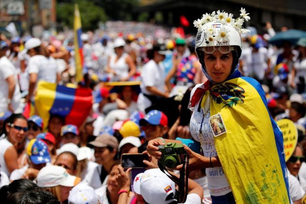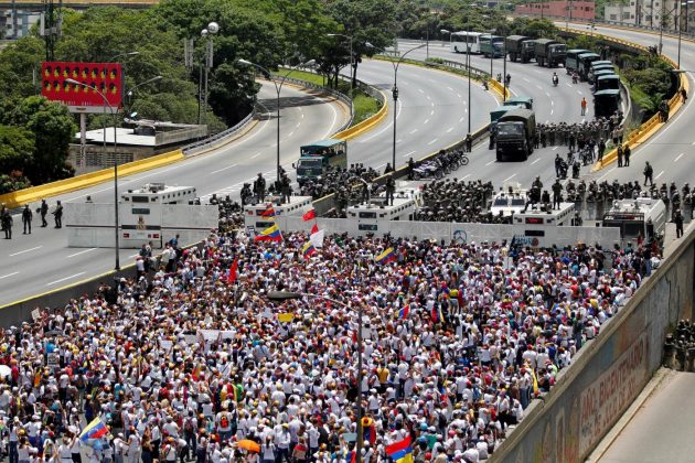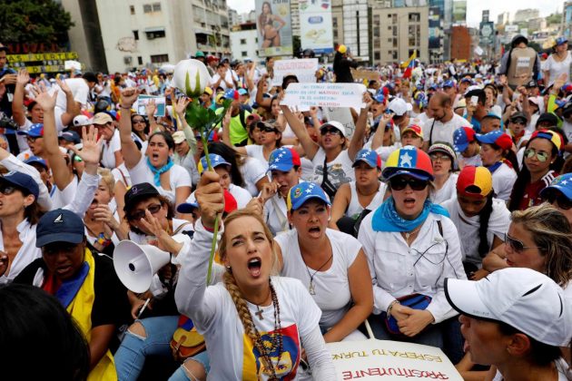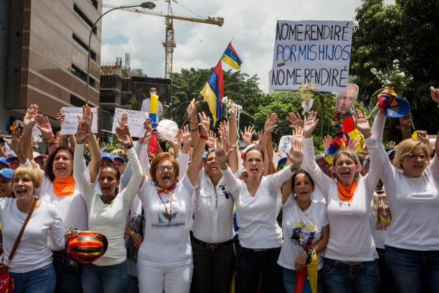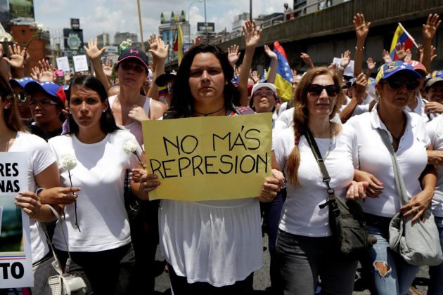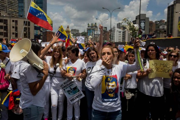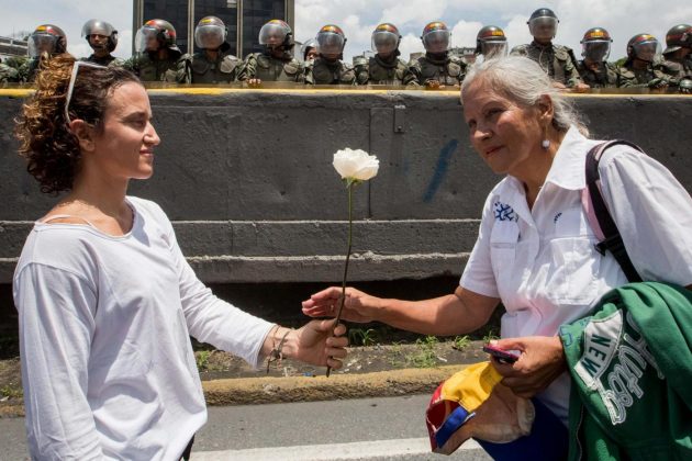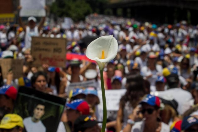 Decine di migliaia di donne venezuelane, vestite di bianco e armate solo di garofani e cartelli, sono scese in piazza per sfidare il potere e per dire basta alla repressione delle proteste attuata dal presidente Maduro e dalle forze di sicurezza, che ha provocato 37 morti nelle ultime settimane di manifestazioni. Ma hanno marciato anche alcune centinaia di venezuelane favorevoli al governo: hanno camminato in corteo fino alla sede dell’Ombudsman, nel centro di Caracas, dove hanno letto un documento in cui si dicevano a favore della pace e contro il “terrorismo” rappresentato dall’opposizione di Unità nazionale (Mud). Le manifestazioni si sono svolte in modo pacifico dopo giorni di scontri, anche se gli anti-chiavisti hanno deciso di cambiare il percorso del corteo dato che la polizia aveva bloccato molte vie della capitale.
