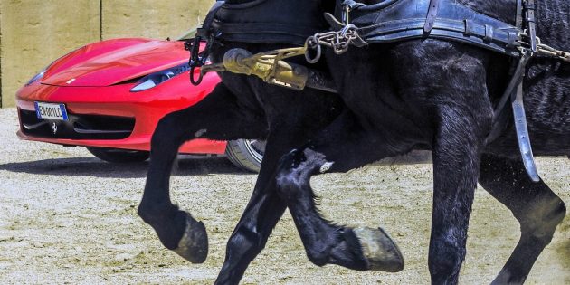Ferrari, la 458 Italia contro una biga e due cavalli. Chi la spunterà? – FOTO