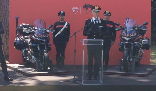 C’è sempre una prima volta. Come nel caso dell’inedito sodalizio tra la Ducati e i Carabinieri: la casa di Borgo Panigale infatti ha fornito quattro Multistrada 1.200 S ed Enduro all’Arma, che verranno come primo impiego destinate alla copertura del prossimo summit G7 a Taormina del 26-27 maggio, e quindi sfileranno in parata per la Festa della Repubblica il 2 giugno. Per poi essere destinate alle diverse operazioni che rientrano nei compiti di una forza come quella dei Carabinieri. “Abbiamo moto con la tecnologia e la sicurezza necessarie per tutti i tipi di utilizzo che ne fa l’Arma”, ha dichiarato l’Amministratore Delegato di Ducati Motor Holding Claudio Domenicali, mentre il comandante dei Carabinieri generale Tullio Del Sette si è detto “orgoglioso che Ducati abbia scelto l’Arma dei Carabinieri come eccellenza“. Tutta italiana.