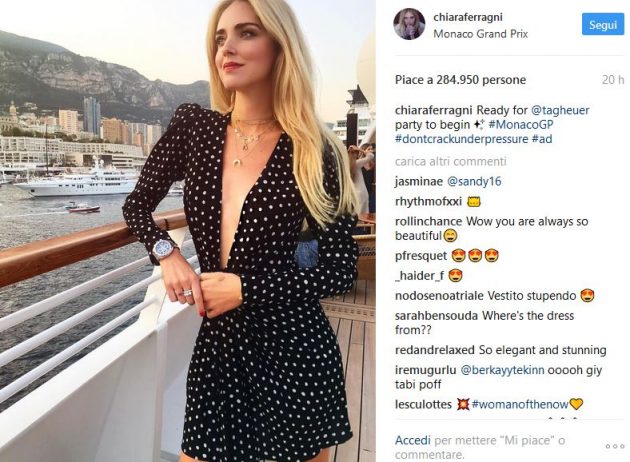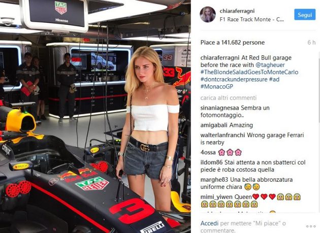 Prima il party Tag-Heuer Under Pressure Award, poi una comparsata nei paddock del Gp di Montecarlo. E’ stata Chiara Ferragni la protagonista femminile di questo Gran Premio: pantalonicini neri e top bianco, la fidanzata di Fedez si è fatta fotografare sorridente. Insieme a lei, il pilota Daniel Ricciardo.