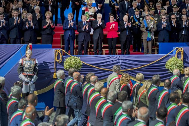 Mattarella questa mattina ha reso omaggio alla tomba del Milite Ignoto al Vittoriano, dove ha deposto una corona d’alloro, dando il via alle celebrazioni ufficiali del 2 giugno, culminate nella tradizionale parata militare lungo via dei Fori Imperiali. Il Presidente è stato accompagnato all’Altare della Patria dal ministro della Difesa Roberta Pinotti e dal capo di Stato maggiore. Sulle scale del Vittoriano è stato ricevuto tra gli altri, dai presidenti di Camera e Senato, Pietro Grasso e Laura Boldrini, dal presidente del Consiglio Paolo Gentiloni, e dal presidente della Corte Costituzionale, Paolo Grossi.