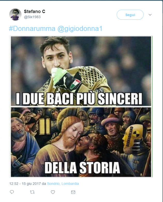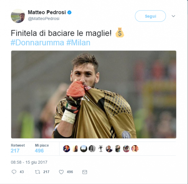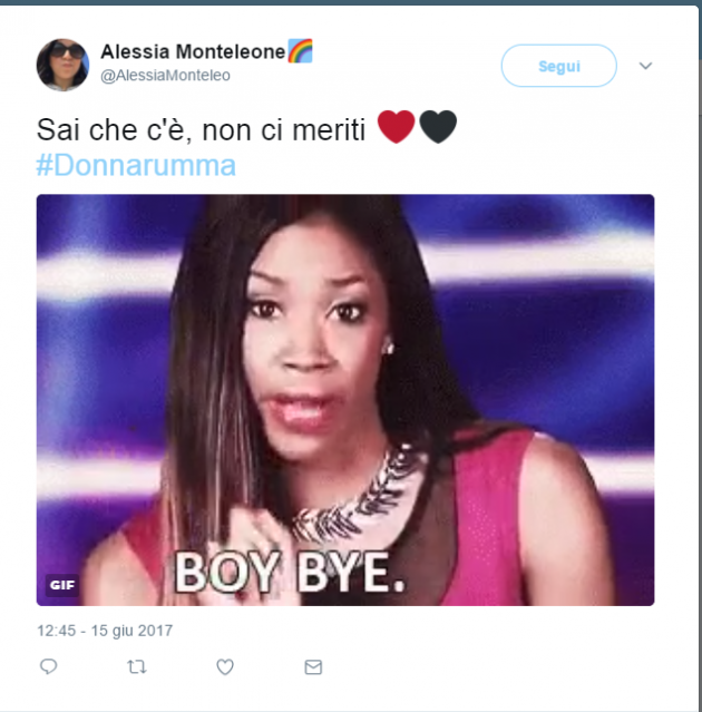 Ciao Gigio, porta i tuoi baci in giro per il mondo. I tifosi del #Milan non te li sei meritati #Donnarumma pic.twitter.com/HocCSTzs5Z