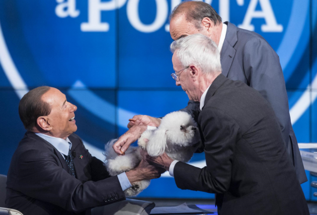 Le zampette si agitavano nell’aere cercando una salvezza lontana. Gli occhi sgranati e fissi nel vuoto, come a chiedere aiuto per uscire da una situazione di frustrante impotenza. Il povero barboncino bianco che ieri sera Bruno Vespa ha messo tra le mani di Silvio Berlusconi a Porta a Porta non è altro che una involontaria rappresentazione simbolica di come si sono sentiti milioni di italiani negli ultimi 23 anni di impegno berlusconiano in politica.