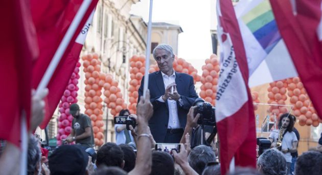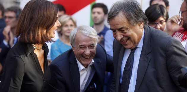 Il paradosso è tutto dentro l’appuntamento di Roma, quello che dovrebbe battezzare la rifondazione del centrosinistra. Si chiama “Insieme“, c’è la scritta dietro al palco, composta con tanti palloncini in arancione. Ci sono i bersaniani di Mdp, gli ex giudici della Consulta Valerio Onida e Giovanni Maria Flick, la presidente della Camera Laura Boldrini, l’Arci, i giornalisti dell’Unità, conduce Gad Lerner, sfilano da Pippo Civati a Livia Turco fino all’ultimo prodiano in Parlamento, Franco Monaco e al pentasindaco di Palermo Leoluca Orlando, il cui trionfo era stato incredibilmente messo nella casella delle vittorie da Lorenzo Guerini. Ma ci sono anche gli esponenti della minoranza Pd: lo stesso ministro della Giustizia Andrea Orlando, ma anche il presidente della Regione Lazio Nicola Zingaretti, per dire che “questa piazza non deve essere alternativa al Pd perché il Pd, come ha detto Franceschini, è nato per unire” dice il guardasigilli, “c’è bisogno di stare insieme o regaliamo il paese a qualcuno” ribadisce il governatore. Ma il paradosso arriva a piazza Santi Apostoli con un paio di baffetti: “Andremo alle elezioni ognuno con la sua piattaforma – dice Massimo D’Alema – Se noi avremo un grande successo, come io spero, sarà possibile riaprire un discorso col Partito democratico per spingerlo a tornare ad essere una forza che vuole fare il centrosinistra, perché il centrosinistra non è una parola, è una politica. E la politica del Pd di questi anni non è stata una politica di centrosinistra, sennò non saremmo qui”. Altro che “Insieme”, altro che unità. Il centrosinistra alle prossime elezioni non ci sarà. Dopo, chissà. Sepolto il dibattito sulla coalizione di centrosinistra che aveva fatto litigare con tutti, Renzi con Prodi e vabbè, ma perfino Renzi con Franceschini (ma solo un po’). Dibattito che ancora oggi il segretario del Pd rimanda a mai più: “Fuori dal Pd non c’è la rivoluzione socialista, marxista, leninista, ma M5s o la Lega – dice a Milano dove ha riunito i segretari di circolo – Fuori non c’è la sinistra di lotta e di governo ma la sconfitta della sinistra”.
