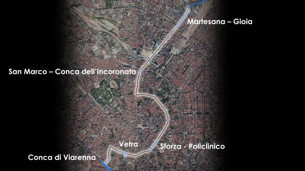 Il primo tratto previsto è il prolungamento della Martesana in via Melchiorre Gioia, lungo 850 metri e largo 10,5. Secondo quanto spiegato dal sindaco, è quello che avrebbe meno impatto sul traffico perché, sacrificando i parcheggi, rimarrebbero due corsie di viabilità in entrambe le direzioni. Il secondo tratto, lungo 230 metri e largo 7, è in corrispondenza della Conca dell’Incoronata – San Marco. Per il terzo tratto, vicino alla futura fermata del metrò Sforza – Policlinico, si sfrutteranno i lavori in corso per la realizzazione della linea 4: il canale qui sarà lungo 410 metri e largo 7. Anche la realizzazione dei 300 metri (larghezza 7) vicino a piazza Vetra potrà contare sui lavori della M4. Il quinto tratto sarà collegato alla Darsena, in corrispondenza della conca di Viarenna, lungo 260 metri e largo 12. “I costi per la prima riapertura sono di 150 milioni circa – spiega Sala -. Li recupereremo dai nostri bilanci, anche se contiamo sulla generosità dei privati”. In un secondo momento si valuterà l’opportunità di riportare in superficie tutto il collegamento, per un totale di 7,7 chilometri: “L’intera operazione potrebbe costare 500 milioni ma si deciderà più avanti, anche perché prima la città dovrà digerire il primo passaggio in termini di viabilità e opere. Ma la nostra intenzione è quella di arrivare a una riapertura integrale”. Con la possibilità che il futuro collegamento tra Martesana e Darsena sia navigabile.