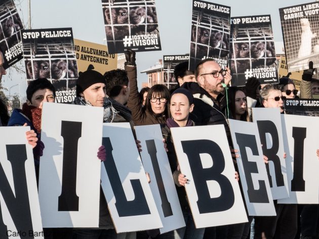 E quando anche nascono in luoghi più moderni provengono dalle camere a gas. Quelle stesse ancora attive negli allevamenti italiani, dove annualmente con l’arrivo dell’inverno si conclude il ciclo vitale dei visoni e almeno 180.000 finiscono la loro breve vita soffocati in questo modo terribile.