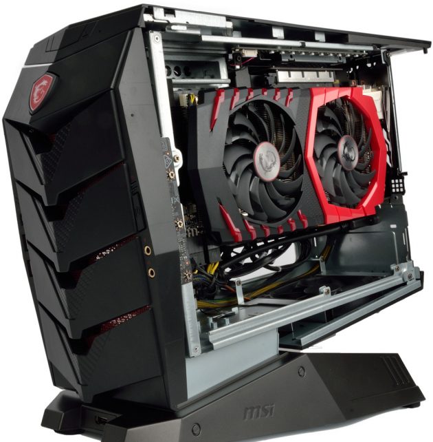 Nonostante le forme compatte del case non abbiamo riscontrato problemi di surriscaldamento grazie alle varie soluzioni adottate da MSI per ottenenere una gestione ottimale dei flussi d’aria, come ad esempio l’alimentatore alloggiato in maniera separata rispetto al resto dei componenti e la scheda video montata verticalmente con le ventole rivolte verso le feritorie laterali.