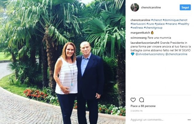 Un irriconoscibile Silvio Berlusconi fa “bella” mostra di sé in un paio di scatti pubblicati, su Instagram, da Caroline Chenot. Il leader di Forza Italia è andato proprio nella leggendaria Spa di Henri Chenot, a Merano, per rimettersi in forma in vista della volata lunga che porterà alle elezioni politiche del prossimo anno. E a vedere le due fotografie della Chenot, i risultati sono quantomeno sorprendenti. In Alto Adige, assieme a Berlusconi, c’erano anche la figlia Marina, la deputata Michaela Biancofiore (che è di quelle parti) e il medico personale dell’ex premier Alberto Zangrillo.