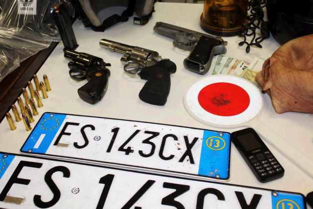 I quattro, tutti pregiudicati, sono stati notati mentre entravano in un box con dei borsoni. Ne sono usciti poco dopo e sono stati bloccati: “Erano pronti a far fuoco, avevano il colpo in canna – spiegano i carabinieri – Armati fino ai denti”. Una pistola semiautomatica e due revolver, 28 colpi a disposizione. E poi maschere in gomma, cappellini, guanti in lattice e una tanica di benzina. Dove andavano? “Siamo certi che la città di Torremaggiore venga utilizzata come base logistica dai criminali. Non abbiamo ancora contezza di chi fosse la vittima designata”. Ma fonti investigative affermano che i quattro pregiudicati erano pronti “a fare qualcosa di grosso”, probabilmente da inserire nella lotta tra gruppi criminali e mafiosi del Foggiano. Uno dei quattro, Tommaso D’Angelo (nella foto sopra, ndr), è ritenuto vicino al clan Moretti-Pellegrino-Lanza, attivo nella città capoluogo.
