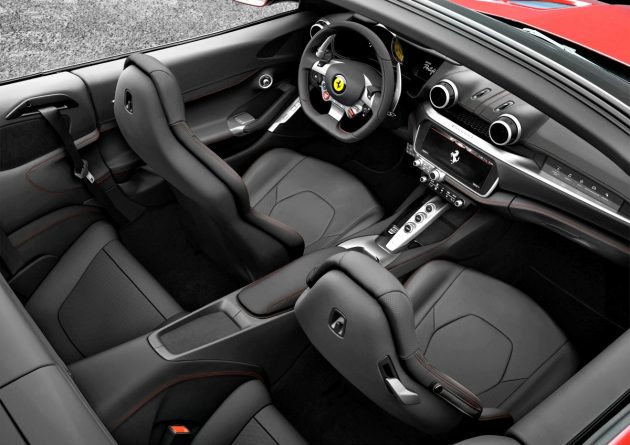 La Portofino è stata particolarmente curata anche sotto il profilo del comfort di bordo: quando si viaggia col vento fra i capelli il nuovo wind deflector riduce del 30% il flusso d’aria all’interno dell’abitacolo e previene la rumorosità aerodinamica interna. Il sistema di infotainment deriva invece da quello della GTC4Lusso – si basa su uno schermo touchscreen da 10,2” – da cui sono stati presi in dote anche la console del climatizzatore e il volante. Senza dimenticare i sedili a regolazione elettrica fino a 18 vie, con un nuovo design dello schienale che consente uno spazio aumentato per le gambe dei passeggeri posteriori. Per chi siede accanto al guidatore invece c’è il “passenger display” che visualizza le principali informazioni tachimetriche dell’auto durante la marcia.