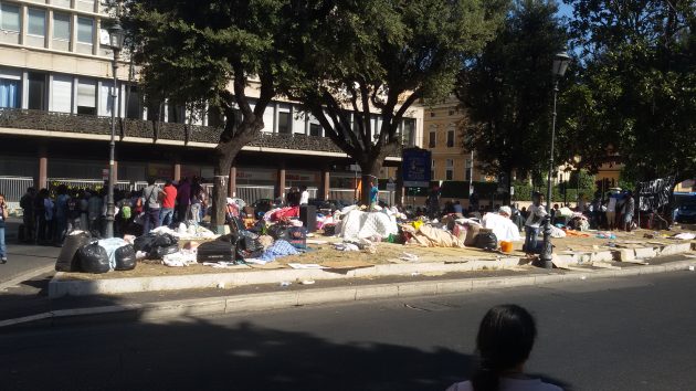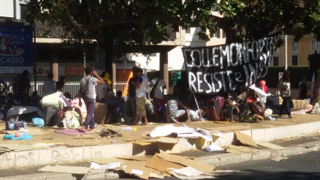 Una soluzione che non risolve. Perché le famiglie eritree resistono e dalla centralissima Piazza Indipendenza – a due passi dalla Stazione Termini – non se ne vogliono proprio andare. A ormai cinque giorni dallo sgombero dell’edificio ex Ispra di via Curtatone a Roma, occupato dal 2013 da circa 450 rifugiati politici provenienti dal Corno d’Africa (per le associazioni di volontariato erano 800), l’unica prospettiva indicata dal Comune di Roma – condivisa dal Comitato per l’Ordine e la Sicurezza che si è riunito presso la Prefettura – è quella di utilizzare 8 villette gestite dal fondo Idea Fimit Sgr (lo stesso che gestisce l’edificio di 11 piani occupato fino a sabato scorso), che però si trovano in provincia di Rieti – dunque ad almeno 60 km dalla Capitale – e soprattutto sono utilizzabili solo per 6 mesi e soltanto dalle 107 persone “censite dalla Sala Operativa Sociale come persone in condizioni di fragilità”. Attualmente, in realtà, ci sono oltre un centinaio fra donne, bambini, anziani e disabili che sono stati riaccolti nell’edificio perché “soggetti deboli”, mentre altre 70-80 persone si sono accampate al centro della piazza e sono per lo più uomini e donne familiari o comunque legati a chi è rimasto dentro. Il risultato è che, secondo il Campidoglio, al momento solo una ventina di persone ha accettato la soluzione prospettata, mentre la maggioranza di loro chiede di essere accolta in una struttura che sia almeno all’interno dello stesso municipio (in tanti hanno trovato lavoro, seppur precario, in zona) e che comunque che i nuclei familiari non vengano separati. Va anche ricordato che, allo stato attuale, praticamente tutte le persone rimaste nella zona di piazza Indipendenza hanno già ottenuto dal Governo italiano lo status di rifugiati politici e dunque non possono (e non devono) tornare nel circuito dei centri d’accoglienza Sprar.