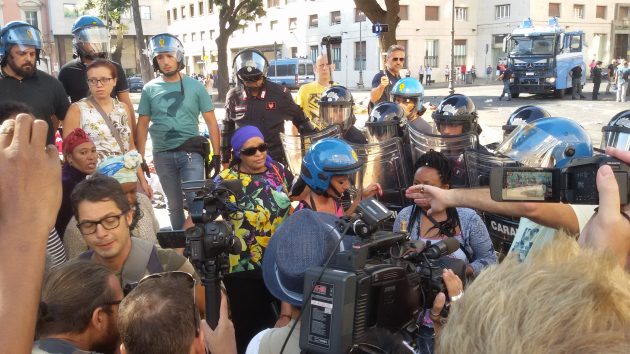 “Svegliati dagli idranti, presi per i capelli e colpiti con il manganello” – “Siamo stati svegliati con l’acqua degli idranti – ha raccontato una donna – Hanno preso alcune di noi per i capelli colpendole anche con i manganelli. E’ assurdo: siamo rifugiati politici, abbiamo i documenti in regola“. E un’altra aggiunge: “Quella donna con il braccio fasciato è stata colpita con un manganello e ora sta andando in ospedale. Non è giusto. Abbiamo dormito per strada per 5 notti. Vogliamo solo una casa”. “Questo è uno Stato accogliente? No è un paese fascista, disumano“, ha urlato una terza donna. Un migrante è stato fermato e portato via dalle forze del’ordine mentre, fermo in via Goito, dava un’intervista a La7.