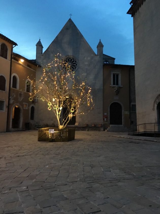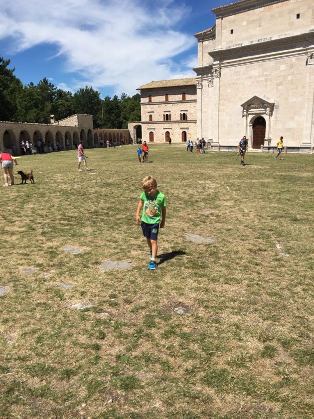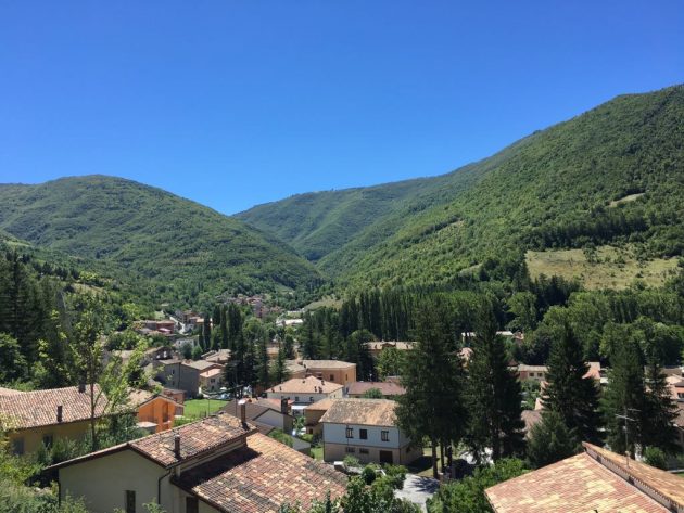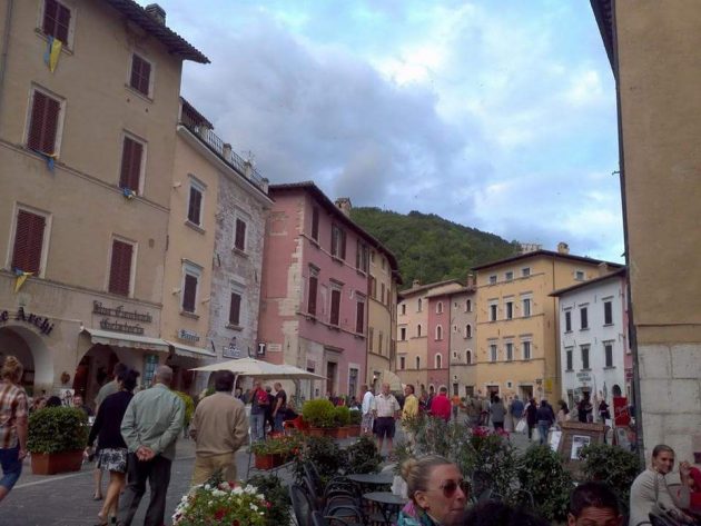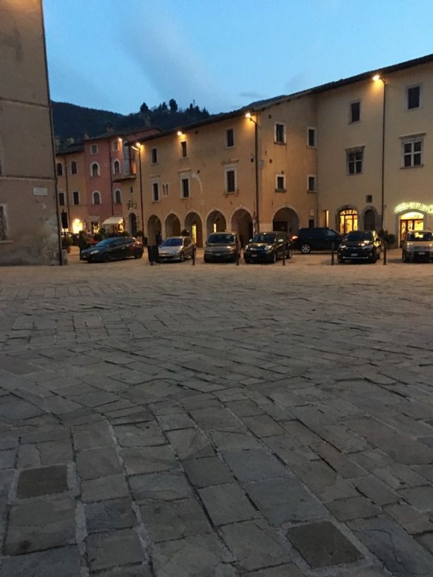 Un anno fa eravamo appena tornati da una passeggiata sulle montagne vicino casa. Avevamo fatto una sosta in piazza come sempre prima di rincasare e avevamo ordinato la cena da portar via in quel ristorante che ci piaceva tanto, dove la cucina era quella verace e familiare di sempre. I bambini avevano tolto gli scarponi e posato le racchette da trekking, per giocare come sempre sul palco allestito al centro del borgo medievale, per i concerti nelle sere d’agosto. Noi grandi eravamo seduti sugli scalini della chiesa, in un rituale di vecchia annata, col campanile medievale sulla testa e le torri antiche sullo sfondo, a mettere la firma sul paesaggio.