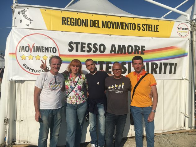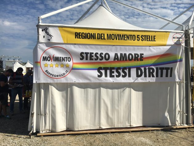 Italia 5 stelle, tra gli stand anche lo striscione per i diritti gay: “Se M5s al governo si approverà la stepchild adoption”
