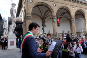 750 esimo anniversario della morte di dante,il sindaco recita un passo della divina commedia e depone una corona sotto la statua in piazza santa croce