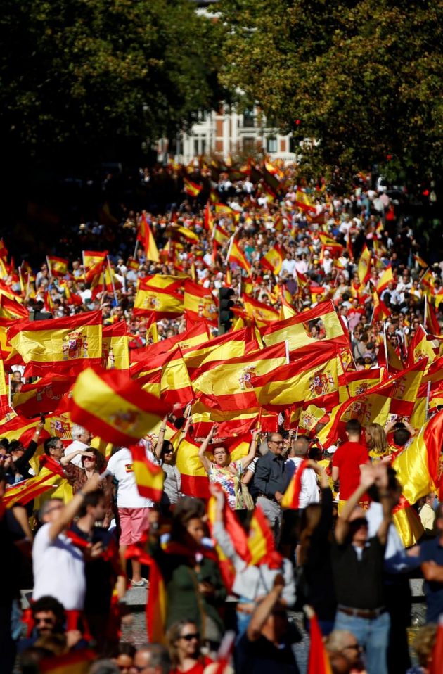 Questo nel giorno in cui la capitale spagnola ha visto sventolare migliaia di bandiere gialle e rosse e ha sentito gridare slogan come “Viva la Spagna”, “Sono spagnolo” e “Con i golpisti non si dialoga”, mentre altri manifestanti hanno portato in piazza cartelli con la scritta “Parlem? Hablamos?” (“Parliamo?” in catalano e spagnolo). Secondo le autorità sono oltre 50mila i cittadini spagnoli che oggi, 7 ottobre, hanno manifestato a Madrid in Plaza Colon (piazza Cristoforo Colombo) e nella calle de Serrano in difesa dell’unità nazionale, della Costituzione e dello stato di diritto, mentre in altre città della Spagna, tra cui Valencia, i cittadini hanno sfilato per chiedere pace e dialogo in Catalogna e spingere i politici di dialogare e arrivare a una soluzione della crisi. A Barcellona 5.500 persone hanno preso parte al corteo in piazza Sant Jaume, per chiedere la mediazione tra la Generalitat catalana e il governo di Madrid in vista di una possibile dichiarazione unilaterale di indipendenza, prevista per lunedì 9 ottobre.
