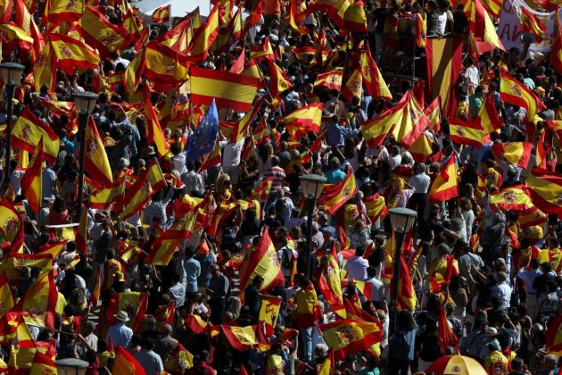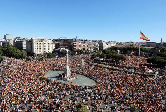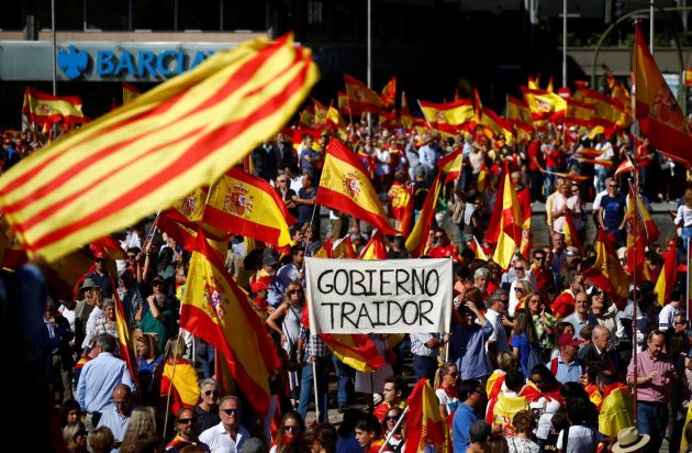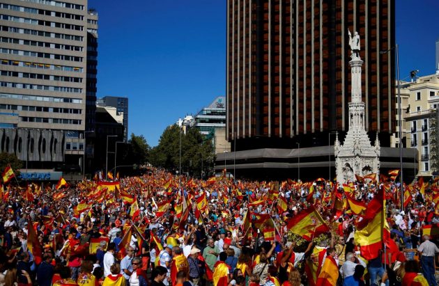 Referendum Catalogna, a Madrid in migliaia in piazza in difesa dell’unità nazionale. Il premier spagnolo Rajoy: “Impediremo qualsiasi dichiarazione di indipendenza”