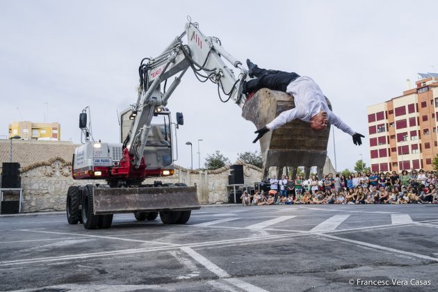 Nel secondo Transports exceptionnels, a cura della compagnia Beau Geste, in prima linea c’è Dominique Boivin (il teaser palpitante). Ci ha ricordato il minuscolo uomo primitivo contro un mammut, che gira attorno, schivandola, ballandoci insieme, rincorrendola o venendo rincorso, ad una ruspa (non c’era Matteo Salvini alla guida, tranquilli) con la sua bocca meccanica spalancata di denti d’acciaio come ruggito di fiera.