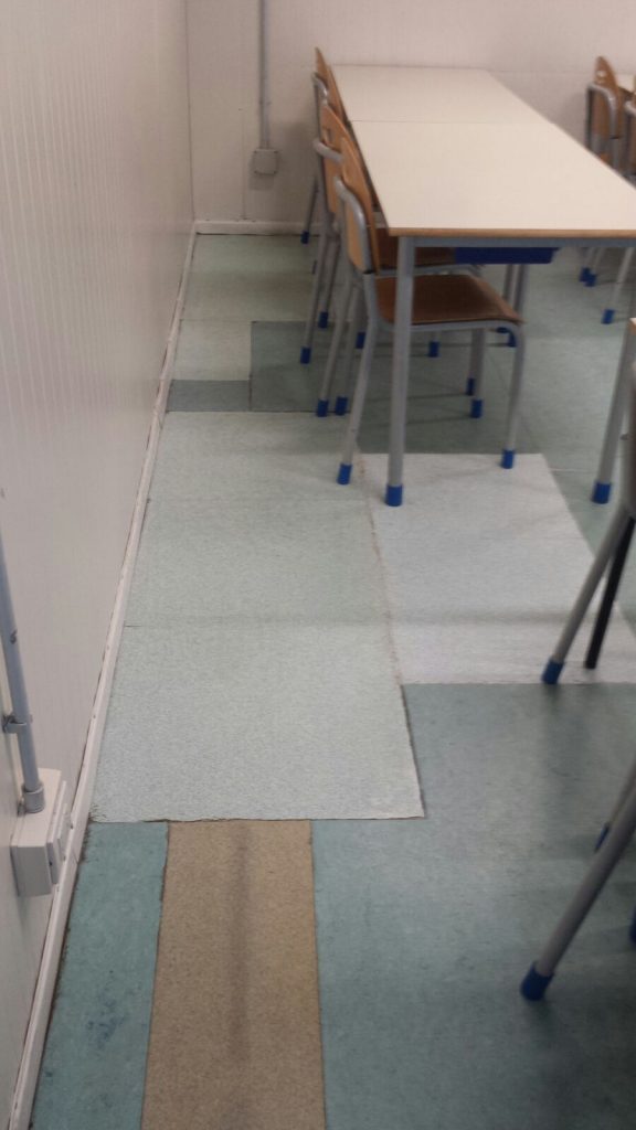 In una serie di punti hanno riassunto la drammatica situazione: “Le aule ricavate hanno un livello di areazione inadeguato a causa dell’inappropriata altezza del soffitto. Le suddivisioni degli ambienti costituite da framezzi in metallo non consentono lo sviluppo di adeguata didattica da attuare tramite l’impiego di nuove tecnologie. I pavimenti in prodotti artificiali e plastici emanano ad ogni apertura sentori malsani che costringono il personale ad aerazioni forzate”.