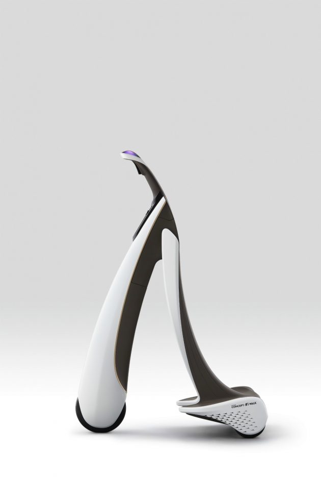 Ultima nota per la “i-Walk”, una specie di Segway a tre ruote alimentato a batteria (autonomia fino a 20 km): ci si accomoda sulla pedana e lo si gestisce tramite il “manico”, dove tra l’altro arrivano i segnali luminosi e sonori del solito Agent di cui sopra che vigila sulla presenza di ostacoli (soprattutto persone visto che l’utilizzo è previsto in aree pedonali) ed è in grado di evitarli autonomamente. Occhio a non correre troppo però…