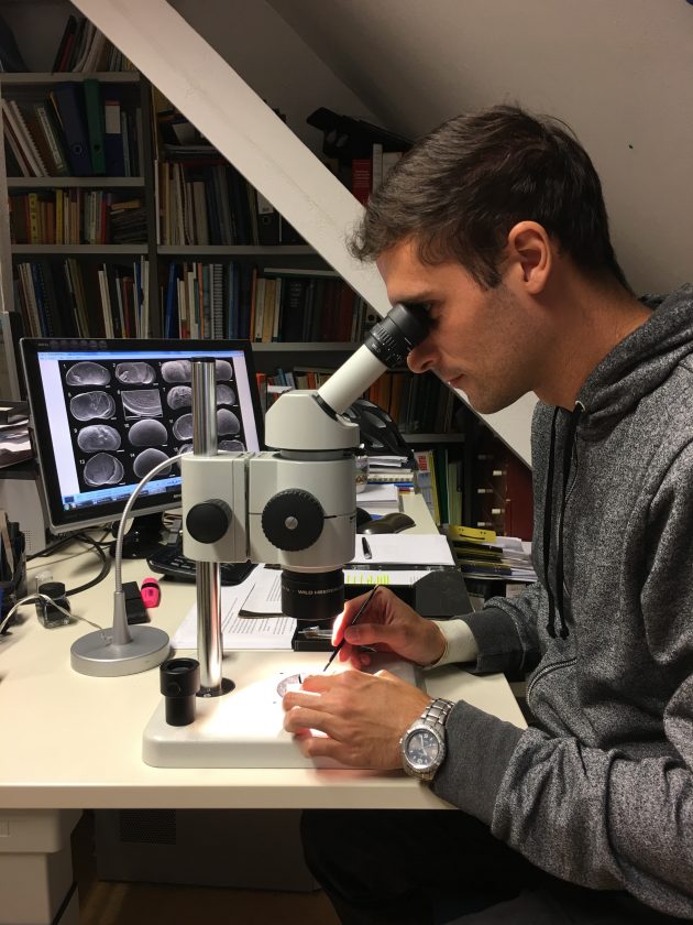 Dopo il liceo, la scelta è ricaduta su geologia: “Da piccolo avevo la passione per i dinosauri e poi ho sempre amato stare in mezzo alla natura”, spiega. Il sogno era quello di diventare un insegnante di scienze: “Quando mi sono informato ho scoperto che era molto più semplice ottenere una cattedra in Sud Tirolo che a Roma, così ho cominciato a studiare il tedesco”. Intanto, però, una sua docente lo ha spinto a mandare la tesi all’estero: “All’inizio ero abbastanza scettico, ma poi sono arrivate alcune risposte positive, tra cui quella dell’università di Jena, per cui lavoro ancora oggi”, sottolinea. Ed è qui che dal 2013 riesce a portare avanti i suoi studi sulla micropaleontologia ambientale: “Attraverso il monitoraggio dei microfossili sedimentati nel terreno cerco di capire se in quella determinata zona c’è stata una contaminazione o se è aumentato il livello di inquinamento”, spiega. Lavoro che gli è valso un premio da 10mila euro messo in palio dalla rivista tedesca di divulgazione scientifica Geo: “Ho vinto grazie al mio articolo sui cambiamenti ambientali delle coste e dei laghi del Ghana, che verrà pubblicato nei prossimi mesi”, racconta.