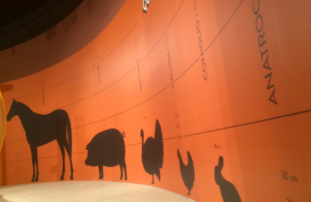La lavorazione del chicco di caffè e i vasconi dello squacquerone, la filatura della pasta e la pestatura del frantoio, i sughi dell’Amerigo di Savigno e la fermentazione delle birre Baladin. Anche se l’apoteosi della ri-creazione del gesto agroalimentare è nell’angolino della tartufaia del boss Urbani, sigaro in bocca e vestito gessato. Qui si esce all’aperto, si sfiorano un paio di sottili bastoncini di vite che danno una malinconia infinita, e si incontra il masterchef Joe Bastianich che accarezza Bonnie. La cagnetta di quattro mesi che un po’ come la sovietica Laika sacrificherà la sua esistenza a scavare da mattina a sera nel giardinetto di FICO e a riportare gli stessi veri tartufi, dieci, venti volte al giorno, tra le mani dell’istruttrice che ogni mattina li nasconderà mezzo centimetro da dove li aveva nascosti il giorno prima. Sempre in tema animale c’è da dire che la tristezza che mettono quei poveri maialini tutti colorati che mangiucchiano bacche dietro le sbarre di una gabbia e ti vengono ad annusare la mano, è unica. Sono animali da esposizione. Ce ne saranno una trentina. Uno per specie. Le mucche vivranno sempre lì, i maiali una volta grandi verranno sostituiti come per magia da quelli più piccoli e presentabili. Sarà il ciclo della vita, la tradizione, il rapporto uomo animale dalla notte dei tempi, ma la pena nel vederli assieme a cavalli, ciuchini e caprette è pari solo a quella provata di fronte ai rassegnati animali da circo costretti con la forza a compiere azioni inconsulte per i voleri del domatore. FICO non si fa mancare nulla. Davvero. Nemmeno le biciclette (sponsorizzate) con cassette di legno davanti e dietro per percorrere più velocemente dall’entrata all’uscita il percorso vita e farsi gettare un caffè al volo, un pecorino lanciato tra le mani e poi un salto all’area barbecue con scivolo blu per l’infante. E per i cattolici cristiani c’è pure la cappella. Un terrificante spazio ricavato da una stanzino ministeriale con una targhetta dove si ringrazia Giovanni Paolo II che in quest’area industriale venne a battere il tempo delle canzoni di Bob Dylan nel 1997. Qualcuno disse che se al Caab era arrivato il papa, figuriamoci se a FICO non ci arriva un autobus. Qui allora si chiude la gita al FICO. Davanti ad un paio di autosnodati Iveco. Quei mezzi che dovranno trasportare parte dei sette milioni di visitatori del primo anno (stima Farinetti 2013, 2014, e anche più recente 2016) ma che quando girano per il centro di Bologna creano l’effetto tappo ad ogni incrocio.