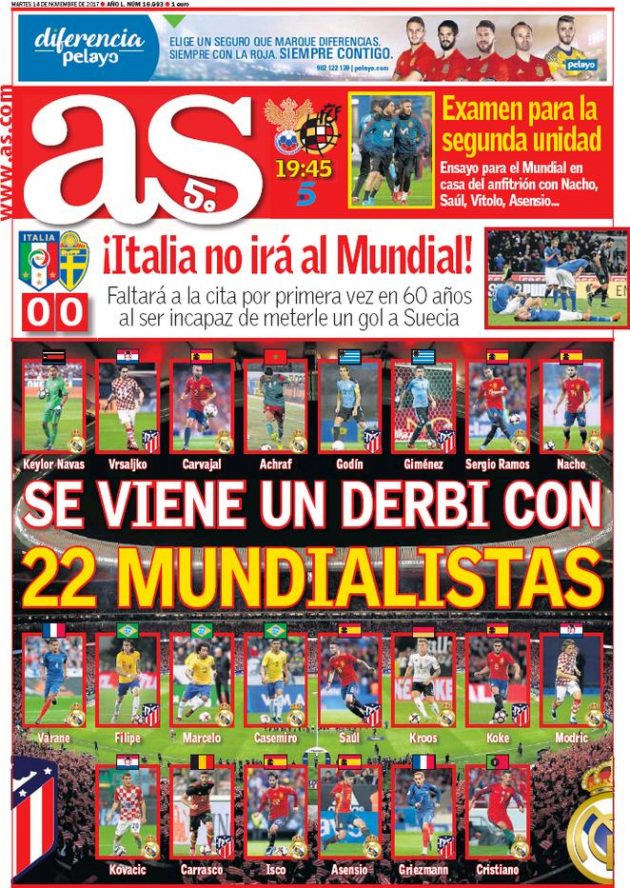 La sconfitta della Nazionale vista dal resto del mondo. Per la Marca un mondiale senza Italia è "incredibile", la sezione sportiva della Bild parla di "terremoto". "Un giorno tristissimo" è il titolo di Olé, sito argentino. Mentre in Svezia, il passaggio del turno è "Un miracolo a Milano". Il Tempo infierisce sulla squadra: "Andate a lavorare"