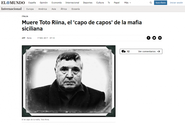 La notizia della morte di Totò Riina, il ‘capo dei capi’ di Cosa nostra ha fatto il giro del mondo. “Si è spento uno dei più temuti padrini della storia della mafia siciliana“: la foto di Totò Riina campeggia sul sito del quotidiano francese Le Figaro, che traccia un profilo del boss e spiega il suo ruolo come mandante per le morti dei giudici Giovanni Falcone e Paolo Borsellino. Grande spazio anche sull’homepage di El Paìs, il principale quotidiano spagnolo, che definisce Riina il “capo dei capi della mafia” e il “padrino più tenuto e sanguinario della storia“, sospettato di avere ucciso personalmente 40 persone. Su El Mundo, altro quotidiano spagnolo, c’è un’immagine in bianco e nero per “El capo” che sfidò lo Stato italiano.