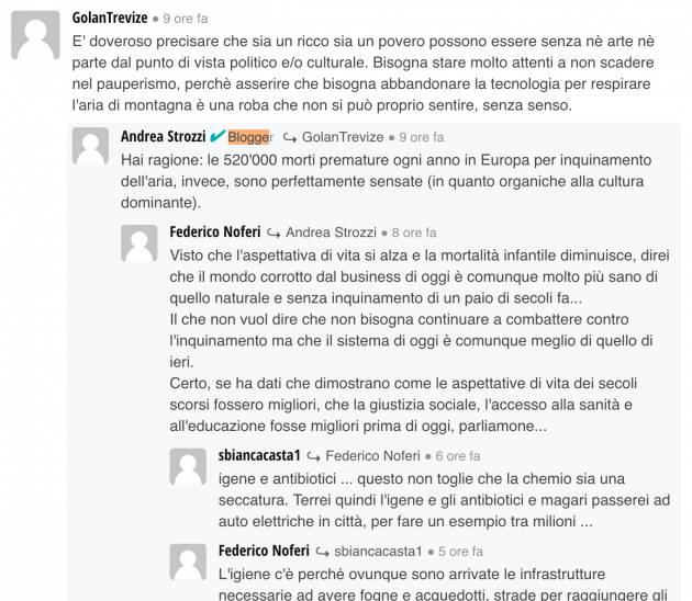 Gentile lettore, la pubblicazione dei commenti è sospesa dalle 20 alle 9, i commenti per ogni articolo saranno chiusi dopo 72 ore, il massimo di caratteri consentito per ogni messaggio è di 1.500 e ogni utente può postare al massimo 150 commenti alla settimana. Abbiamo deciso di impostare questi limiti per migliorare la qualità del dibattito. È necessario attenersi Termini e Condizioni di utilizzo del sito (in particolare punti 3 e 5): evitare gli insulti, le accuse senza fondamento e mantenersi in tema con la discussione. I commenti saranno pubblicati dopo essere stati letti e approvati, ad eccezione di quelli pubblicati dagli utenti in white list (vedere il punto 3 della nostra policy). Infine non è consentito accedere al servizio tramite account multipli. Vi preghiamo di segnalare eventuali problemi tecnici al nostro supporto tecnico La Redazione