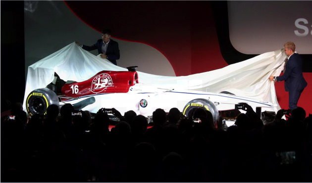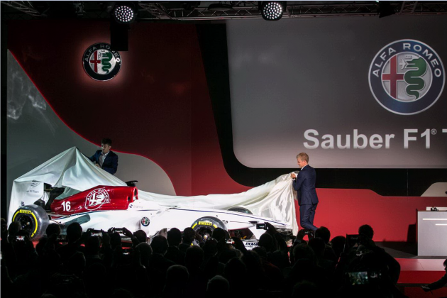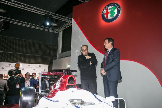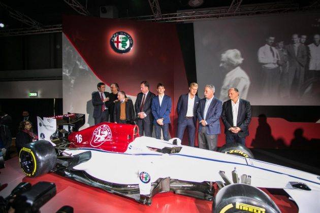 Il simbolo del Biscione spicca sul musetto bianco della nuova Alfa Romeo Sauber, la monoposto che segna lo storico ritorno in Formula 1. La vettura presentata ad Arese è tutta bianca, tranne il tettuccio superiore, che risalta nel suo rosso Alfa ed è pronta “ad aprire un nuovo capitolo della storia della F1″ come ha annunciato Sergio Marchionne, amministratore delegato di Fca. Così, dopo trent’anni di assenza, Alfa Romeo torna nel campionato automobilistico più importante del mondo e “la catena del dna di Alfa si completa dell’ultimo tassello mancante: passato e futuro si uniscono” afferma Marchionne, definendo questo ritorno un “evento storico” e “un momento speciale non solo per noi, ma anche per il nostro Paese” e “importante per il nostro brand, ma anche per tutto il mondo della Formula 1 ed è il segno tangibile di quanto crediamo in questo sport”.