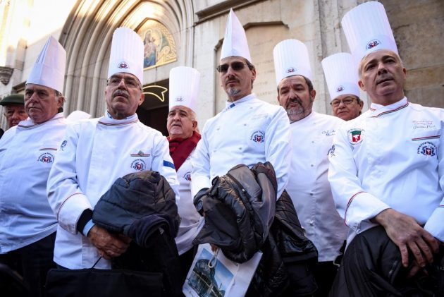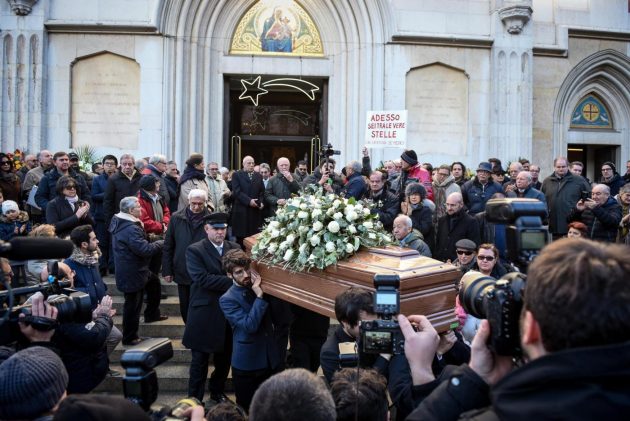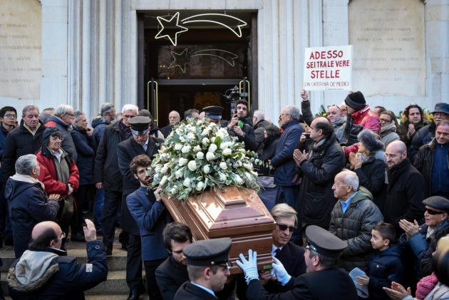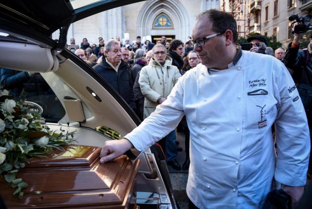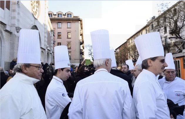 Massimo Bottura, Davide Oldani, Davide Rampello, Sadler, Iginio Massari e Canzian, Pietro Lehman, Santini e Cannavacciuolo: tanti chef hanno voluto dare l’ultimo saluto a Gualtiero Marchesi, scomparso il 26 dicembre all’età di 87 anni. In molti hanno voluto rendere omaggio al maestro innovatore della cucina italiana al suo funerale nella chiesa di Santa Maria del Suffragio a Milano. Al suo arrivo il feretro è stato salutato con un applauso dai molti cittadini presenti.