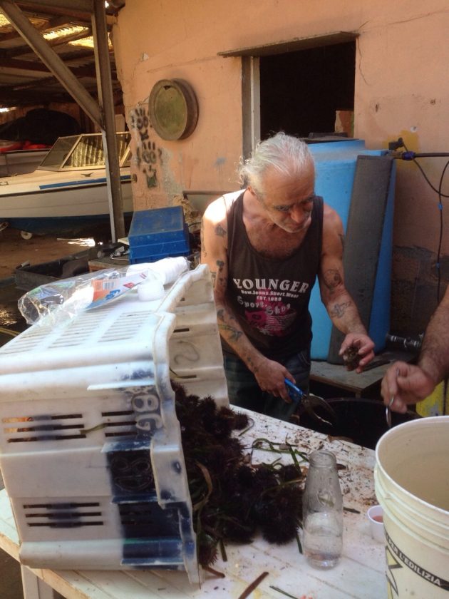 Lo ha salvato dalla disperazione Gesuino Banchero, il patriarca del gruppo, uno che iniziò a indurirsi sopportando lo scudiscio del padre e poi lo sguardo dei vicini quando cominciò, come dice lui, a “guadagnare extra”. Gesuino è comunque uno che ha sbagliato secolo perché sia quando emerge dall’acqua che quando attraversa i mercati sembra appena sceso da un galeoni di bucanieri.