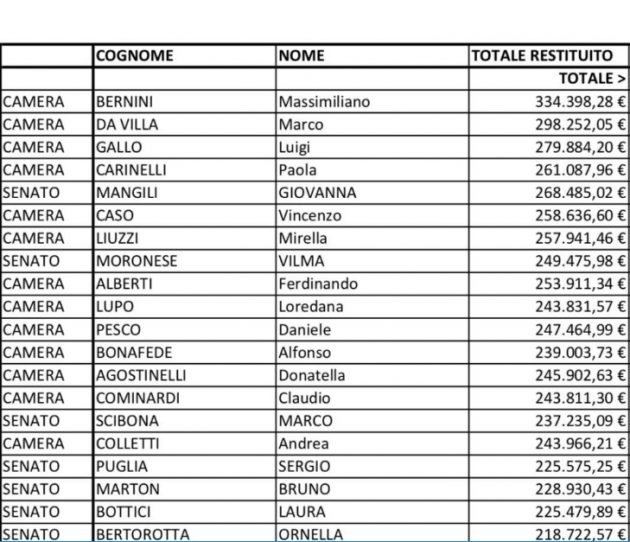 M5s, la lista dei parlamentari che hanno restituito di più. In testa Massimiliano Bernini, Marco Da Villa e Luigi Gallo