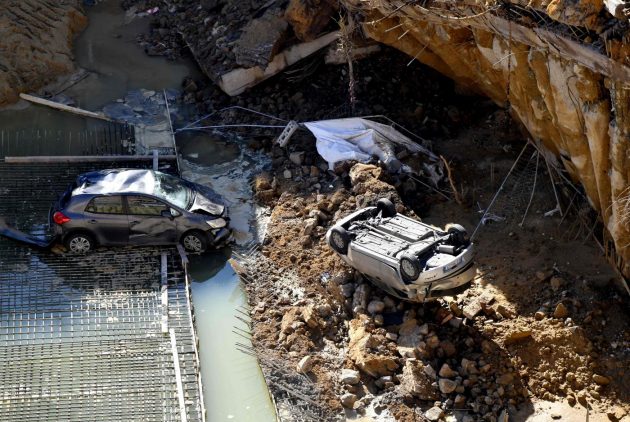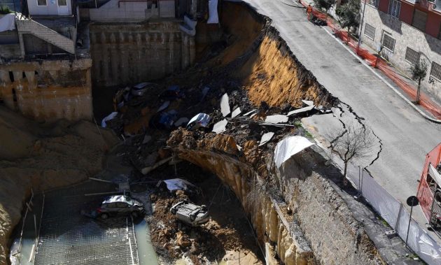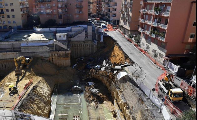 Spetterà a loro stabilire se il cedimento sia stato almeno in parte causato da paratie di mantenimento insufficienti, o dalle infiltrazioni di acqua presenti nel cantiere già prima del crollo e probabilmente dovute a più concause. Alcuni piloni che avrebbero dovuto sostenere il cantiere si sono spezzati nel crollo e la voragine si è in breve trasformata in una piscina di acqua e terra a causa delle infiltrazioni. Il suolo argilloso della zona non ha retto e nello smottamento cinquanta metri di strada sono crollati con sei auto parcheggiate sopra.