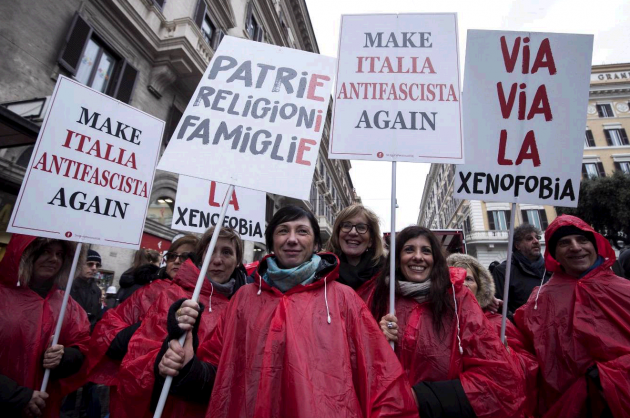 ROMA – Nella capitale sono schierati tremila agenti, pronti a vigilare su due cortei e tre sit-in, di sinistra e di estrema destra. Il maggiore è quello organizzato dall’Associazione partigiani (Anpi) al grido “Mai più fascismi”, ma in piazza ci saranno anche l’estrema sinistra e Fratelli d’Italia. “Siamo in centomila”, annunciano gli organizzatori all’arrivo in piazza del Popolo. Dove si è affacciato per un breve saluto con Gentiloni e qualche dichiarazione a favore di telecamera anche il segretario del Pd, Matteo Renzi.