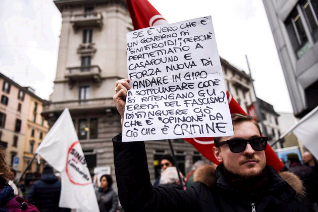 BOLOGNA – Prima di arrivare Milano, il leader di Casa Pound Simone Di Stefano ha parlato da Bologna dove ha affermato che “il fascismo è una dottrina politico sociale che non è esattamente una dittatura o uno Stato totalitario. Noi non siamo per lo Stato totalitario, non vogliamo sopprimere la democrazia. Ci piace che tutti possano liberamente votare ed esprimersi. Lo Stato che immaginiamo si realizza compiutamente all’interno della Costituzione e della democrazia. Il fascismo non lo rinneghiamo”. “Nessuno può vietare a chicchessia di svolgere manifestazioni pubbliche e politiche, soprattutto alle forze politiche che si candidano alle elezioni” ha aggiunto Di Stefano, che ha preso posizione anche in merito alle iniziative prese da alcuni Comuni che con delibere hanno vietato le piazze alle formazioni neofasciste. “Quando i comuni o le amministrazioni cercano di mettere in campo dei fogli di carta con cui impediscono o cercano di impedire a Casapound di fare i banchetti, noi faremo sempre ricorso al Tar per dimostrare che abbiamo diritto come tutti di stare in piazza” ha detto.
