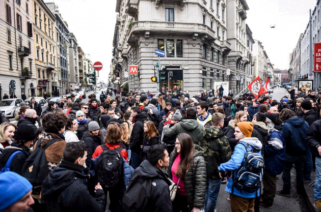 Sul posto è intervenuta la polizia che ha invitato gli studenti a scogliere il presidio. I ragazzi hanno però fatto resistenza passiva e gli agenti hanno sgomberato gli attivisti prendendoli sotto braccio così da farli scendere dal monumento. Nel pomeriggio, nuovi momenti di tensione in largo La Foppa, nella zona di Moscova, dove i collettivi hanno fronteggiato la polizia, che impediva loro di abbandonare il presidio per avviarsi in corteo verso il centro città. Nel pomeriggio in piazza anche la Lega, con il leader Matteo Salvini che in piazza Duomo ha citato Pasolini, Pertini, Croce e tirato fuori un rosario: “Gli ultimi saranno i primi”, ha detto nel corso del suo intervento. Poi ha chiuso la manifestazione mimando il giuramento sulla Costituzione, fingendo di essere nominato premier al Quirinale.