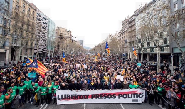 Convocati dal gruppo separatista radicale Comites en Defensa de la Republica e da esponenti dell’Assemblea Nazionale Catalana, i sostenitori della causa indipendentista si sono ritrovati sulla Rambla, nel centro di Barcellona. La colonna dei manifestanti era preceduta da un cartello con lo slogan “libertà per i prigionieri politici”. Diversi partecipanti hanno portato bandiere indipendentiste e maschere di Puigdemont e hanno scandito gli slogan “Libertà per i prigionieri politici” e “Puigdemont nostro presidente”. La marcia si è diretta verso gli uffici di rappresentanza della Commissione europea. Ci sono stati anche alcuni scontri tra manifestanti e polizia.