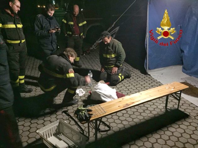 I Vigili del fuoco lo hanno estratto dopo aver sentito dei rumori provenienti da una piccola apertura. Le condizioni di Ciclamino, visitato da un veterinario, sono buone: il cane ha delle piccole escoriazioni sul corpo ma nulla di preoccupante. È stato subito pulito e idratato, ha bevuto una bottiglietta di acqua mentre era avvolto nel telo termico ed è stato tenuto in braccio da un vigile del fuoco perché tremava dal freddo e dallo shock.
