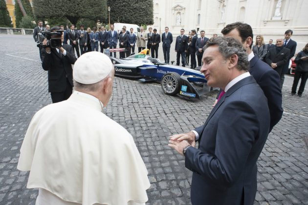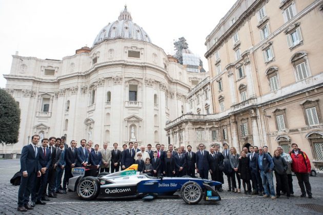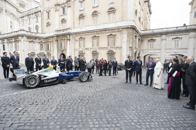 L’incontro con Papa Francesco si è svolto presso la residenza papale di Santa Marta. Qui, prima della canonica udienza papale, il fondatore e CEO di Formula E, Alejandro Agag – accompagnato dal Presidente ACI, Angelo Sticchi Damiani – i piloti e un team di rappresentanti, hanno ricevuto una benedizione apostolica. Più della metà dei team in gara e la vettura ufficiale del campionato hanno fatto visita a Città del Vaticano.