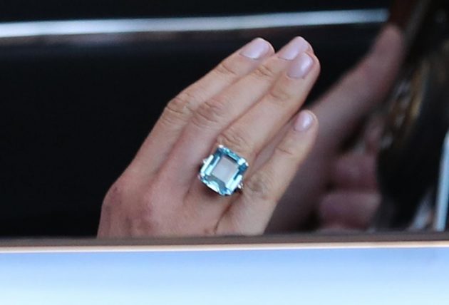La Regina di cuori, che ai suoi figli consigliava sempre di scegliere con il cuore, è apparsa nuovamente poco dopo. La bella attrice statunitense neo duchessa del Sussex è andata al ricevimento di ieri sera con un gioiello appartenuto all’indimenticata principessa del Galles. In questo caso Kensington Palace ha confermato. L’anello con una acquamarina era in tinta con il baby blue della suola delle scarpe Aquazzurra di satin di seta che la sposa ha abbinato all’abito da sera di Stella McCarney. Oltre rendere omaggio a Diana, Meghan ha voluto onorare la tradizione americana di indossare qualcosa di blu quando ci si sposa.