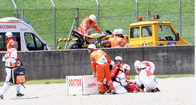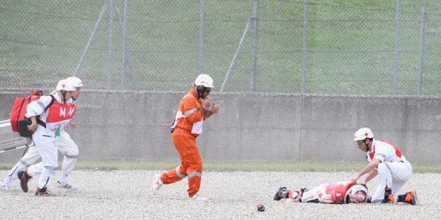 Come se non bastasse il box Ducati ha vissuto attimi di panico in occasione della brutta caduta occorsa a Michele Pirro, che ha perso il controllo della sua moto, da cui è stato violentemente sbalzato, alla staccata della San Donato. Il risultato è un trauma cranico e una lussazione della spalla, ridotta presso il centro medico del circuito. Il pilota è stato subito portato in elicottero all’ospedale Careggi di Firenze per ulteriori accertamenti, ma le sue condizioni – grosso spavento a parte – non destano preoccupazioni. L’unico a sorridere davvero a fine giornata è quindi Andrea Iannone. “Sono veloce e sono molto contento. La squadra ha lavorato molto bene. La moto qui funziona, siamo riusciti a fare il piccolo passo che serviva. Ho un buon feeling, sono veramente felice di aver chiuso la prima giornata in testa – ha sottolineato il pilota della Suzuki – E’ stata una giornata molto positiva, con delle sensazioni buone. Non sarà facile continuare in questo modo, siamo tutti molto vicini. Vedremo come andrà, ce la metterò tutta davanti al pubblico di casa”. Vede il bicchiere mezzo pieno anche Valentino Rossi. “È stato un venerdì positivo, non è andata così male, il mio passo è abbastanza buono – ha ammesso il ‘Dottore’ -È vero che ci sono diversi piloti e moto molto veloci, ma ci siamo anche noi. Siamo sulla buona strada ma dobbiamo lavorare per migliorare ulteriormente. Pirro? Spero stia bene dopo l’incidente, gli auguriamo il meglio per il suo recupero”.