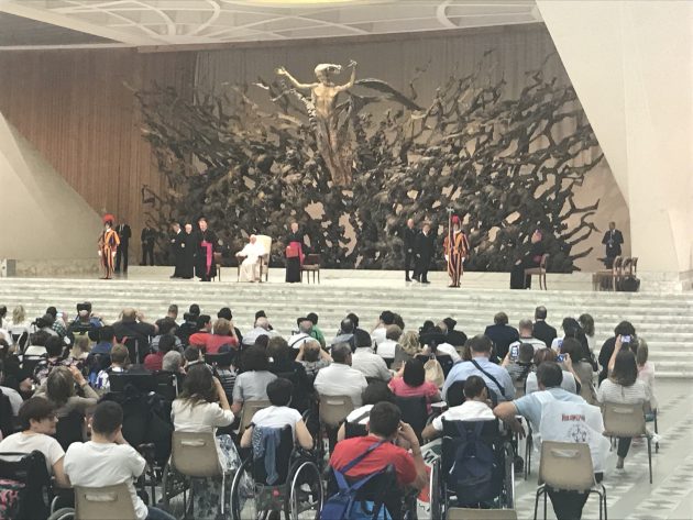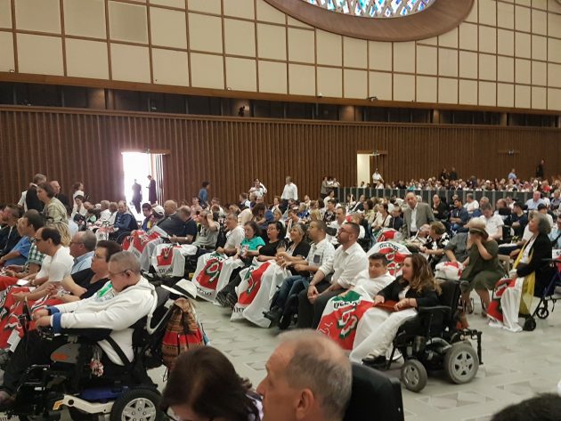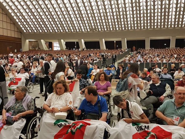 “Il Papa ha apprezzato il nostro attivismo sul territorio” – “Un viaggio faticoso e lungo nove ore è passato in secondo piano rispetto alla possibilità di partecipare all’evento”, dice Filomena Malmesi della Uildm di Torino con Sma. “Ciò che accomuna la Chiesa guidata da Francesco alla nostra associazione – aggiunge Filomena – è il desiderio di aiutare gli altri, essere al loro fianco, farli sentire parte di una comunità coesa, grazie ad azioni concrete di solidarietà e accettazione delle diversità”. Le persone con disabilità devono far parte della società, essere una componente della cittadinanza attiva come le altre, avere le stesse opportunità di tutti, è il messaggio che unisce le persone presenti in Aula Paolo VI il 2 giugno. “In Italia tutto questo – però – è ancora lontano da una effettiva realizzazione ma il nostro attivismo sul territorio è stato riconosciuto anche dalle parole del Papa, segno che siamo sulla giusta strada e parole che ci incoraggiano a proseguire le nostre attività associative. L’incontro con Papa Francesco e le opinioni condivise su inclusione, assistenza, sostegno e lotta in difesa dei diritti per tutti hanno arricchito enormemente il valore della nostra mission come associazione di persone con disabilità”, ha commentato la vice-presidente Uildm Stefania Pedroni con distrofia dei cingoli. Fondata nell’agosto del 1961 da Federico Milcovich, Uildm è costituita da 67 sezioni locali e ha un duplice obiettivo: favorire l’inclusone sociale delle persone con disabilità e sostenere la ricerca scientifica e l’informazione sanitaria sulle distrofie muscolari e sulle altre patologie neurologiche. La Uildm si impegna per il diritto allo studio e al lavoro, alla mobilità e alla possibilità di accedere ad attività per il tempo libero, oltre che associazione che si batte per sostenere i diritti delle donne disabili.