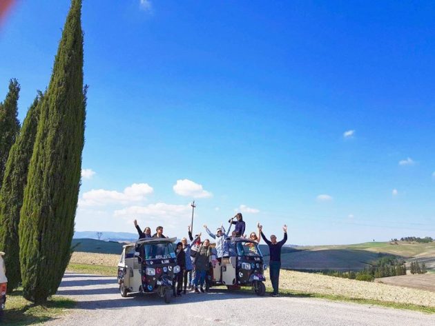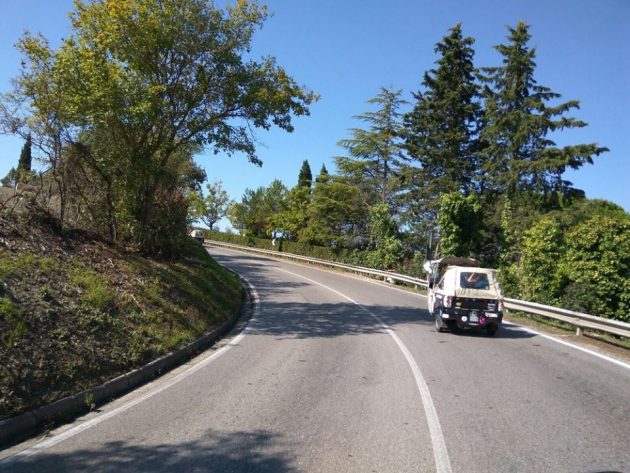I ricordi sono tantissimi. Ogni città nei nove giorni di viaggio si è trasformata in un incontro stimolante e curioso. Dai ragazzi di Officine Buone a Rieti alla web radio di Sirmione, dai canti a squarciagola sulla statale alla serata in musica con la Nota in più, musicisti affetti da autismo e sindrome di down. Ogni mattina la sveglia all’alba: poi la marcia verso la tappa successiva. “Eravamo mezzi addormentati, ma la musica e l’eccitazione facevano da cornice”, ricorda Chiara. 1.500 chilometri in cui i ragazzi a bordo dei loro Apecar non sono riusciti a sorpassare nessuno e a stento toccavano i 50 all’ora. “Però ricordiamo con enorme emozione il momento in cui abbiamo superato – in discesa – un trattore lungo gli Appennini”, sorride Bill.
