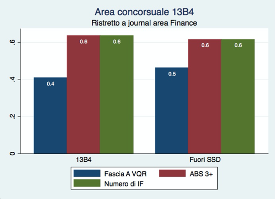 La seconda possibile eccezione riguarda il principio della coerenza con le tematiche investigate all’interno del settore scientifico. Si potrebbe infatti eccepire che i candidati incardinati sotto settori diversi dal 13B4 possano essere sì produttivi, ma non sui temi inerenti al settore. Per fugare questo dubbio, la figura 3 mostra i medesimi indicatori riportati nella figura 2, restringendoli tuttavia alle sole riviste scientifiche classificate dal ranking Abs sotto la categoria Finance.