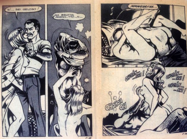 A teatro, invece, c’era il Living di Julian Beck e si andavano a vedere Hair, Oh Calcutta, The rocky horror show. Tutte esperienze alternative, mentre in sala uscivano film, in altri tempi improponibili ai distributori, come La bestia di Walerian Borowczyk, Le farò da padre di Alberto Lattuada, Novecento di Bernardo Bertolucci (con la nota scena della doppia masturbazione manuale, Robert De Niro da una parte e Gerard Depardieu dall’altra, a opera di Stefania Casini). E ancora L’impero dei sensi di Nagisa Ōshima e Ultimo tango a Parigi sempre di Bertolucci o Salò di Pier Paolo Pasolini che avevano meritato addirittura il rogo. E chi non ricorda (se ha una certa età) i fumetti sporcaccioni come Sukia, Jacula, Biancaneve che ritraevano in copertina attrici note trasformate dai disegnatori in vampire assetate di sangue e sesso? In tv, venivano mandati in onda stralci erotici in programmi familiari come Studio uno (la sensuale esibizione di Ike e Tina Turner), il servizio sul Crazy Horse di Parigi a Odeon o il primo processo per stupro. E in libreria esposti e acquistati libri come Porci con le ali di Lidia Ravera e Marco Lombardo Radice o Paura di volare di Erica Jong.