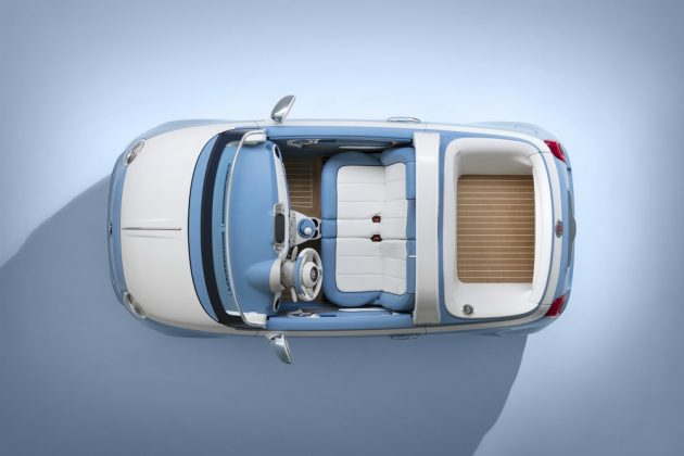La base tecnica è quella della 500, con lo spazio per i passeggeri posteriori trasformato in un vano con doccia integrata. Inoltre la vettura presenta un parabrezza nautico ribassato e il rivestimento del pianale di carico è in sughero dogato, che ricorda i pavimenti in teak degli yacht di lusso. La carrozzeria di questa show car presenta la colorazione “Azzurro Volare e Bianco Perla”.