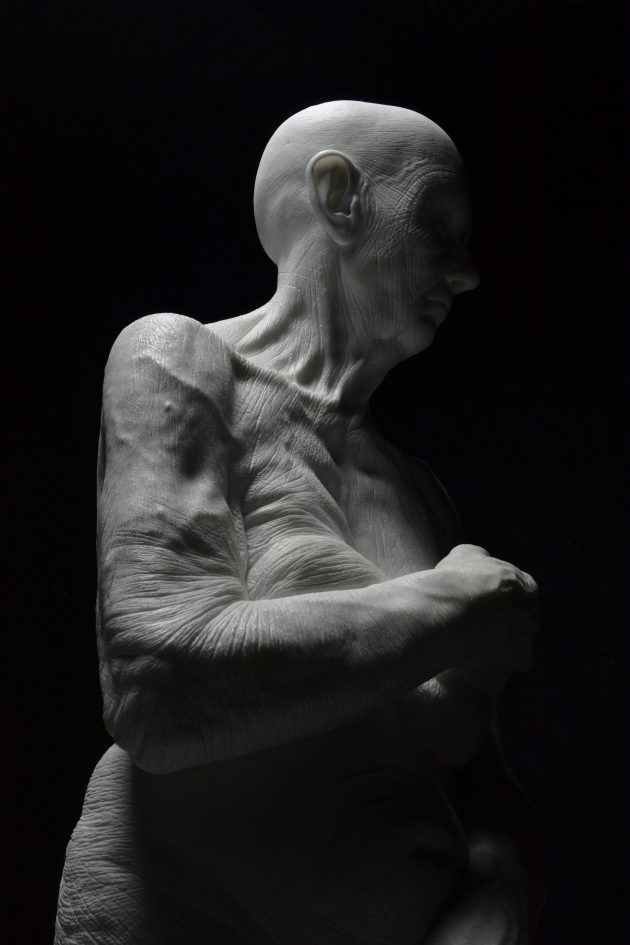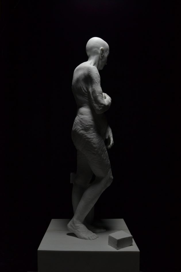 Inizia tutto da un modello in argilla che preparo prima di aggredire il marmo. Per questioni di tempo e praticità. Mi costruisco pochi punti di riferimento che mi permettono di poter sgrossare molto velocemente il blocco. A quel punto vado con la mia sensibilità. Voglio essere libero di poter inventare nel marmo, motivo per cui mi lasco ampi margini di movimento. Tolgo solo il superfluo e quando raggiungo la forma che mi interessa, come volume, allora lì scolpisco. È nell’ultimo centimetro di lavoro che fai la differenza, è in quell’ultimo centimetro di possibilità che si realizza la scultura.